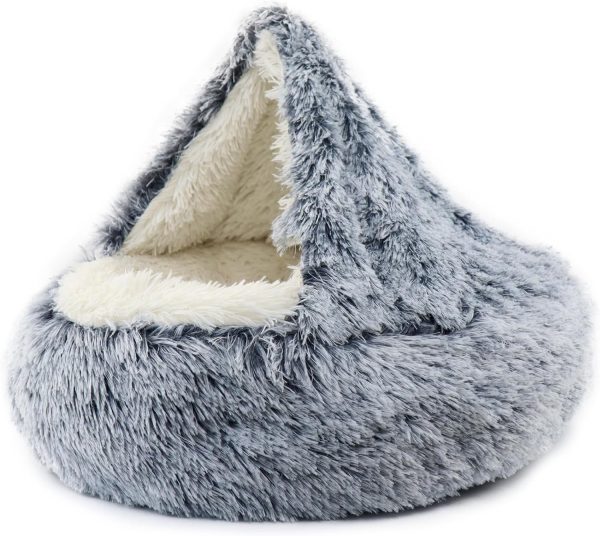 - 【PREMIUM QUALITY】: The cat beds for indoor cats is made of soft plush fabrics, durable line, non-slip bottom, which ensure a durable, warm and comfortable pet bed for your cat or dog. The fluffy cat dog bed also has a supportive inner pad, which is Particularly suitable for small pets who like to curl their bodies to sleep and small cats and dogs!
