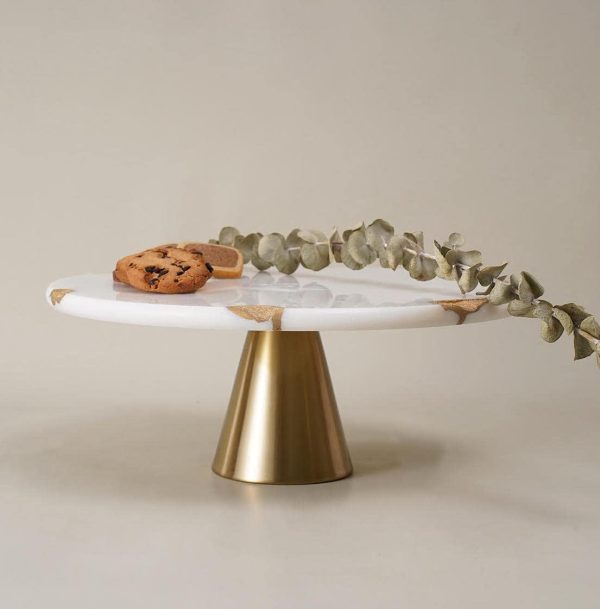 Cake Stand – 12″ Round White Marble with Gold Accent Dessert and Cupcake Serving Display – Perfect for Weddings, Showers, Anniversaries, Parties, or Modern Home Decor (White Marble)