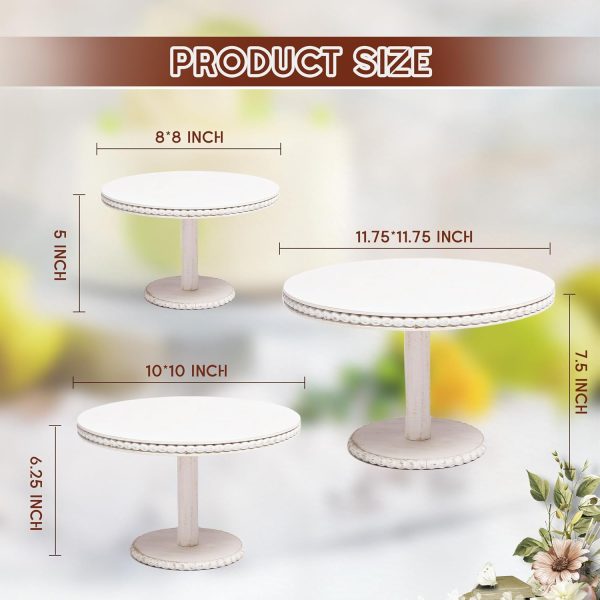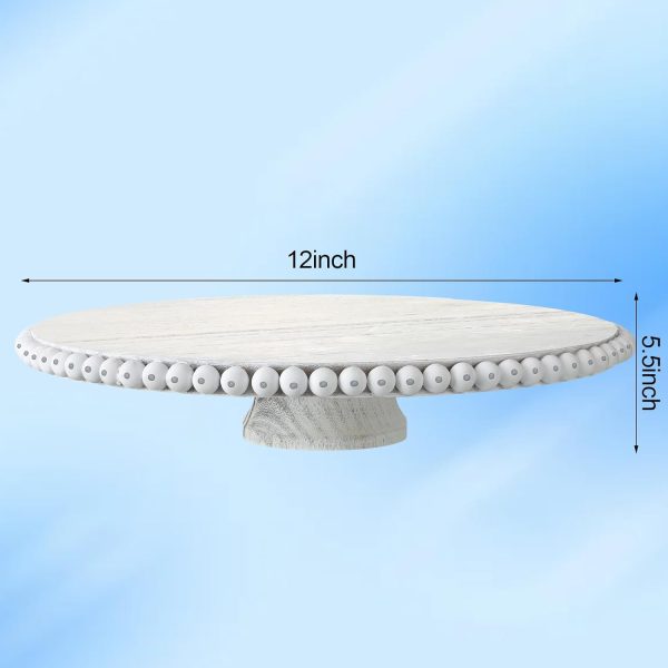 Beaded Tabletop Cake Stand 12 Inch Decorative Wood Cake Stand White Farmhouse Dessert Cake Pedestal Wood Round Dessert Stands Cakes Holder Dessert Display Plate Serving Tray for Table Wedding Display