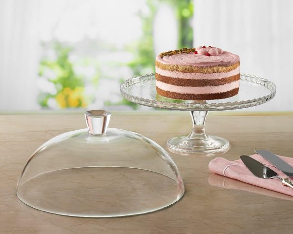 Cake Stand with Dome Lid, Glass Desert Serving Plate and Cover, Footed Pastry Display Server, 12.60 inch Wide Glass Decorative Kitchen Platter for Cupcake Cookies Cheesecake Donut