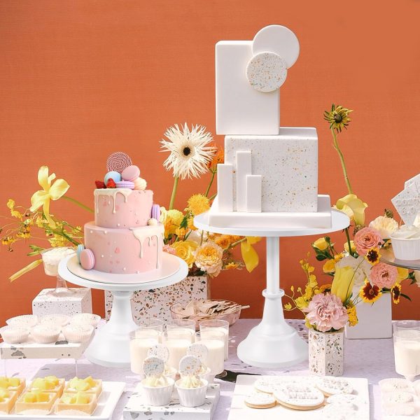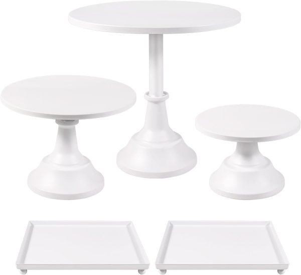 White Cake Stand, 5Pcs Metal Cake Display Stand, Dessert Table Decorations Set for Christmas Wedding Birthday Parties Anniversary (3 Round Cake Stands & 2 Dessert Tray)