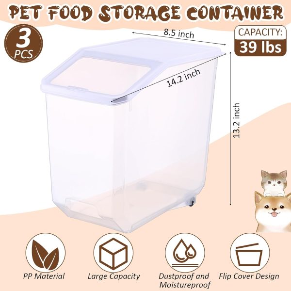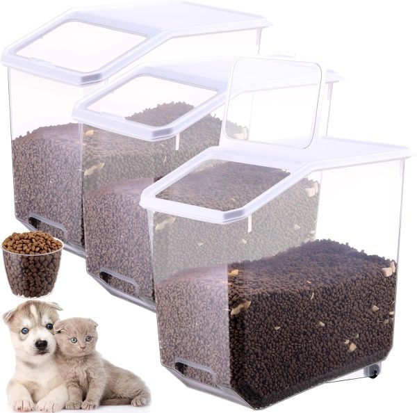 3 Pcs Airtight Dog Food Storage Container with Wheels and Measuring Cup 39 Lbs/18.7 Qt Rolling Cat Food Storage Container with Lid and Seal Buckles Pet Food Bin Dispenser for Dogs Cats