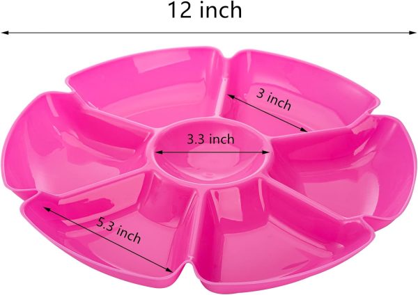 12 Pcs Plastic Snack Serving Tray, 12 Inch Unbreakable Chip and Dip Divided Serving Plates, Round 7 Compartments Multifunctional Food Platter for Snack, Nuts, Candy, Dried Fruit, Veggies