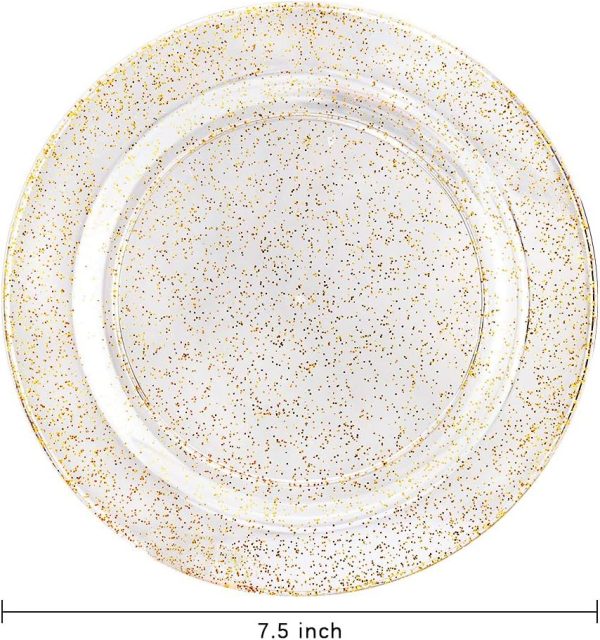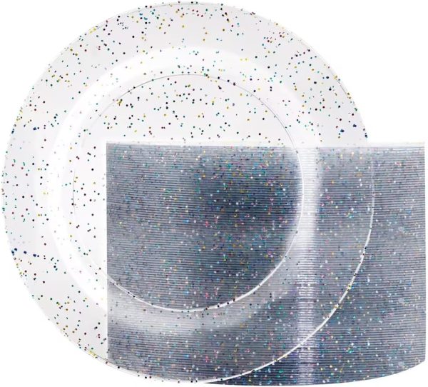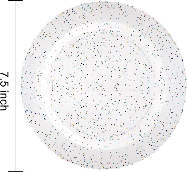 100Pieces Colored Glitter Plastic Plates- Clear Glitter Plastic Plates- Plastic Dessert Plates -7.5inch Glitter Plastic Dinner Plate Perfect for Wedding&Party&Birthday&Thanksgiving