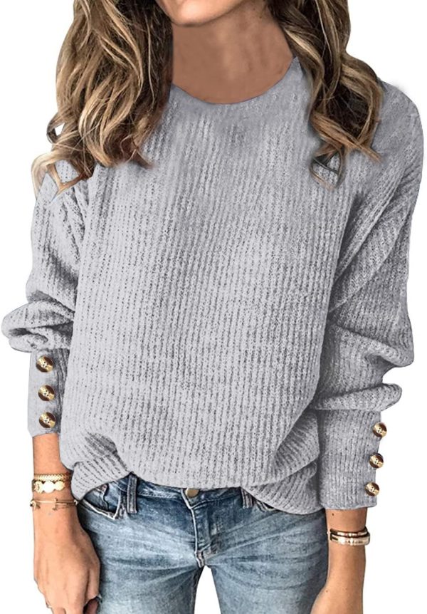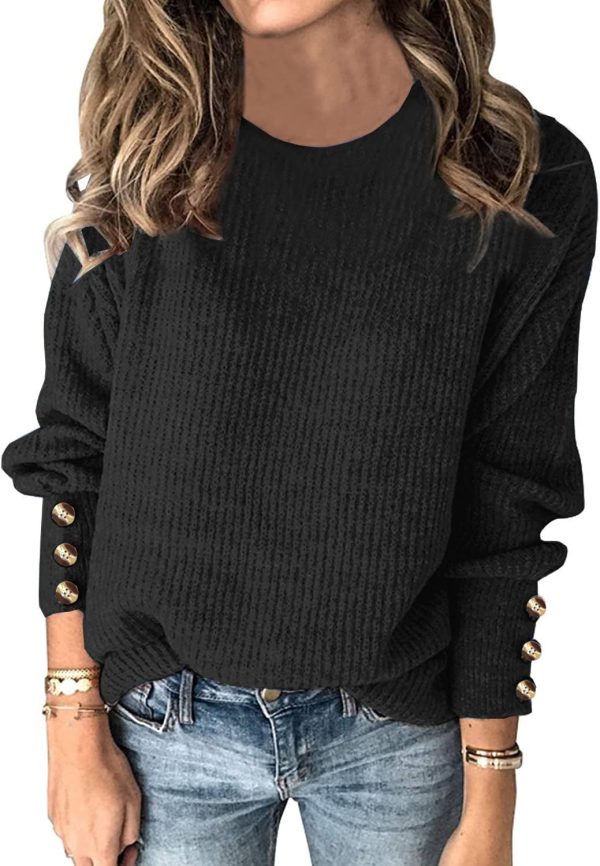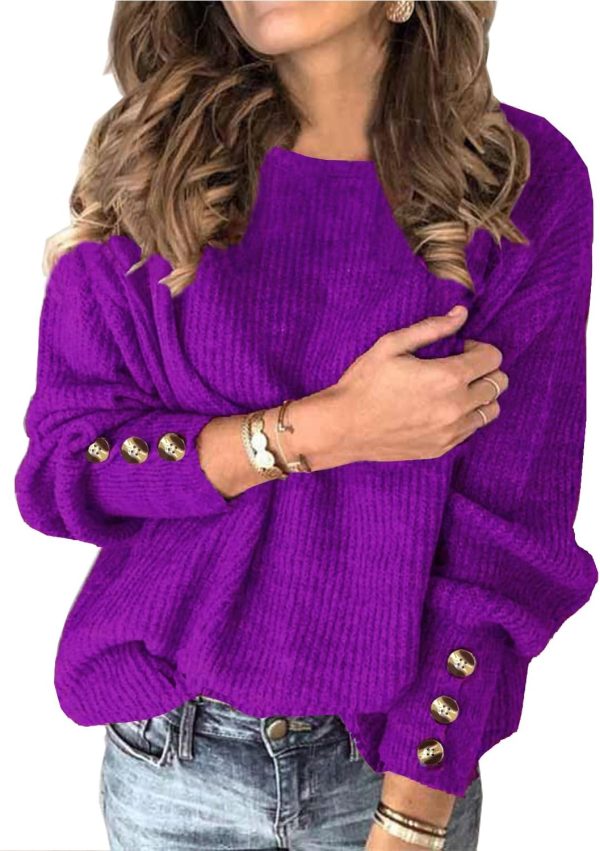 Women’s Pullover Sweaters Batwing Long Crewneck Casual Loose Knit Jumper Tops with Buttons