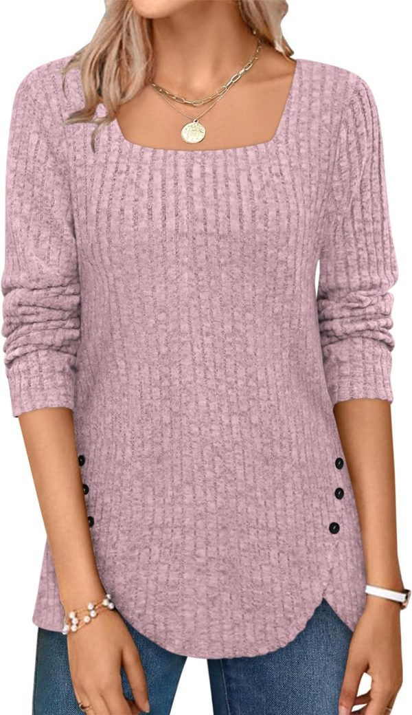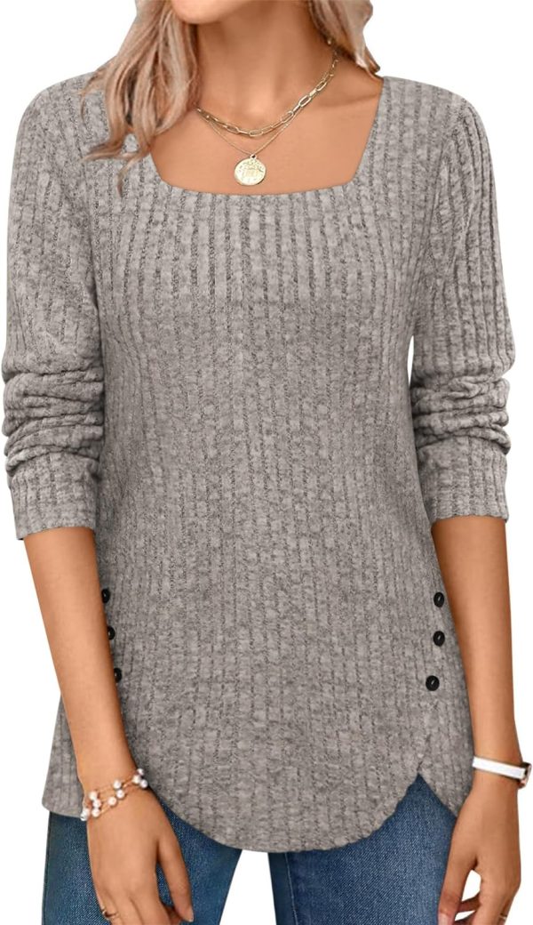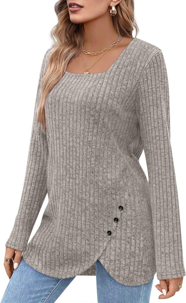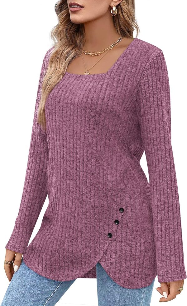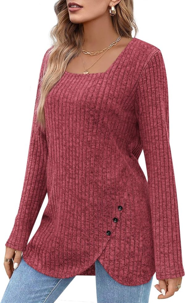 Women’s Sweaters Fall 2024 Lightweight Long Square Neck Tunic Tops
