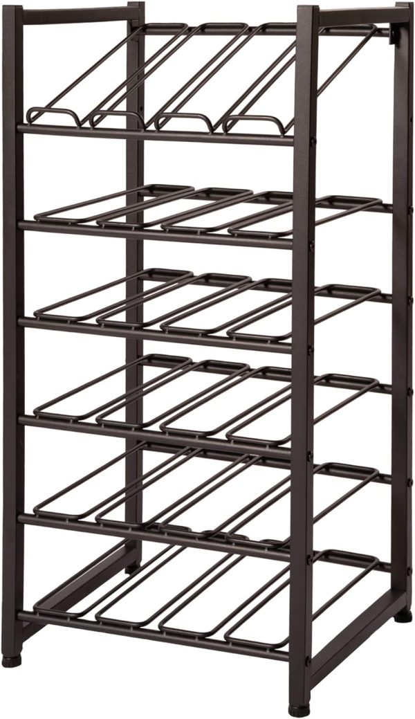 Freestanding Wine Rack – Stackable Bottle Holder for Up to 24 Wine Bottles – Industrial Kitchen Storage Bottle Display Stand – Matte Black Metal Construction – 16.5 x 13.5 x 31.6in