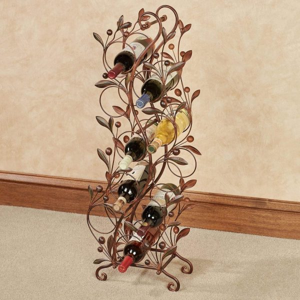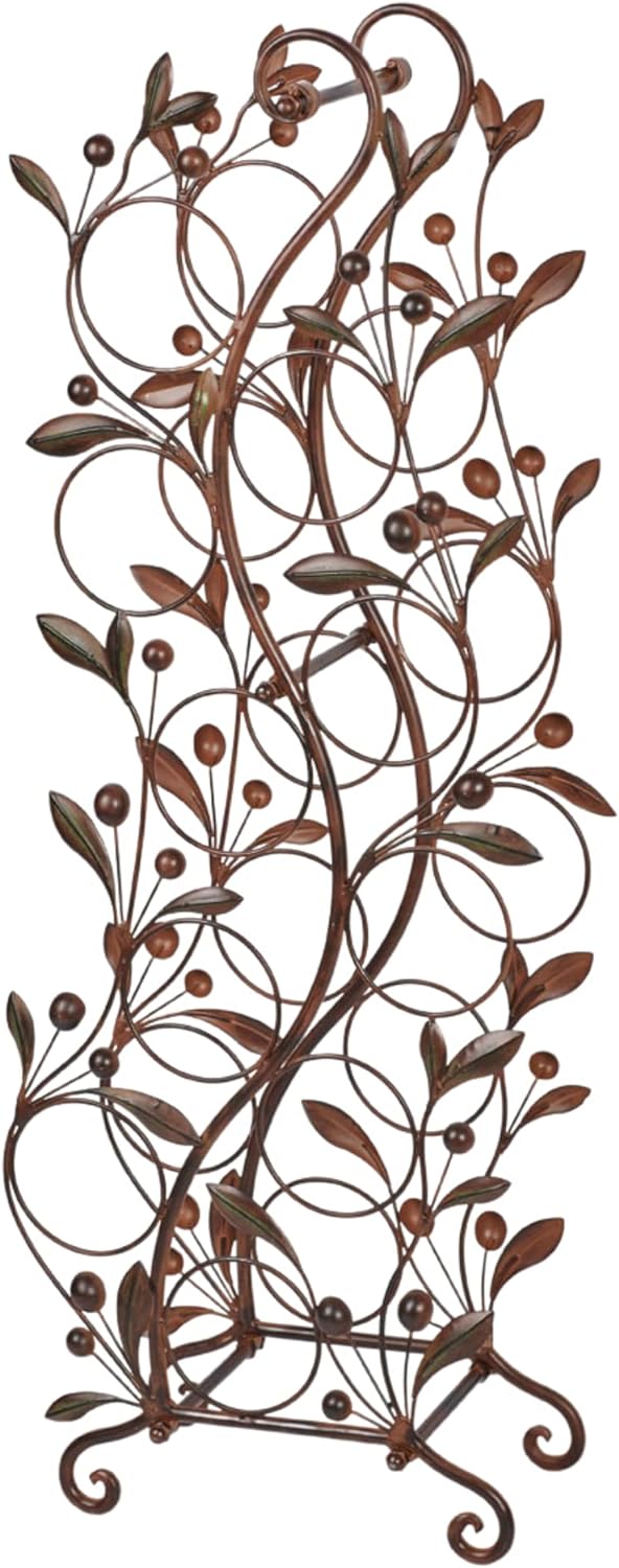 Catalonia Floor Wine Rack Brown – Handcrafted Metal – Painted by Hand – Traditional Style Display – Vintage Storage Holder for 10 Bottles – Freestanding Organizer – 36.5 Inches High