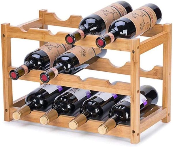 Wine Racks Countertop, Wine Rack 12 Bottle, Wine Storage Holder for Kitchen, Pantry, Cabinet, Bar, 3 Tier