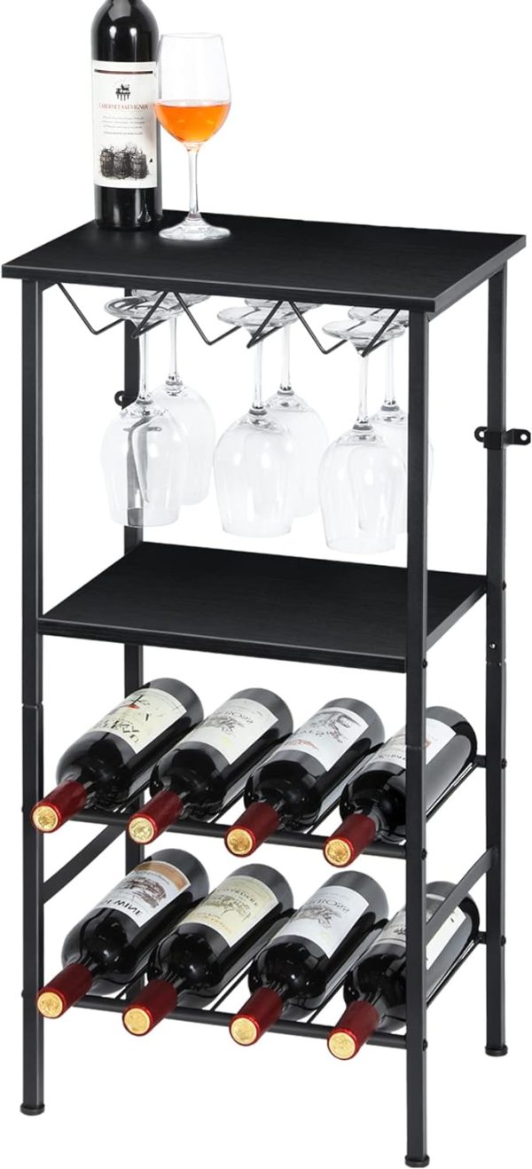 Wine Rack Table, FreeStanding Wine Bar Rack, Wine Bar Cabinet with GlassBottle Holder, Metal and Wood Industrial Wine Cabinet for Home, Floor Liquor Wine Cabinet Storage, Black