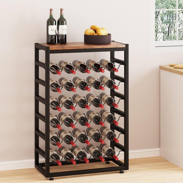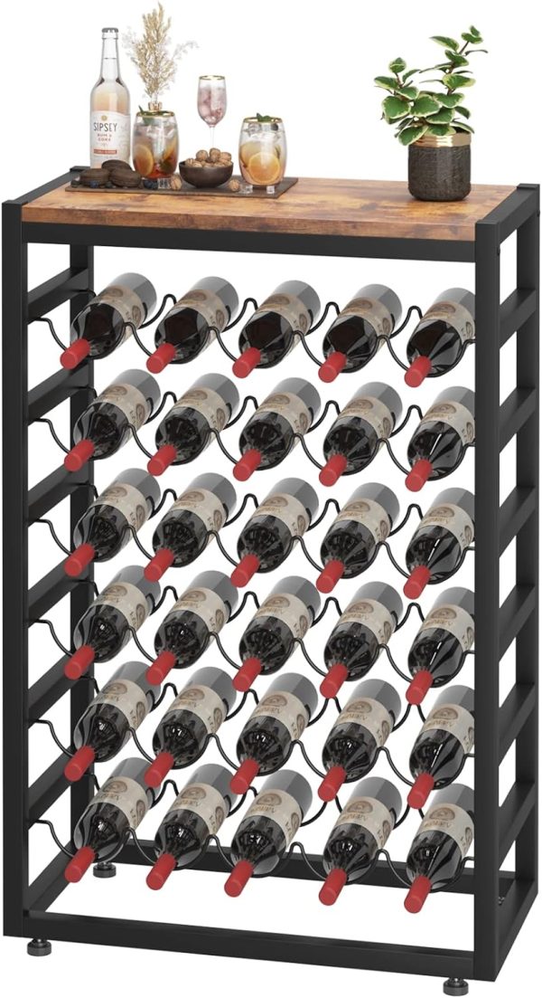 Wine Rack Freestanding for 30 Bottles, Bottle Rack with 6 Shelves Vintage Wine Storage Display Shelves with Tabletop for Cellar Kitchen Bar Dining Room (L23.22x W11.81x H34.65 inches)