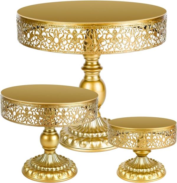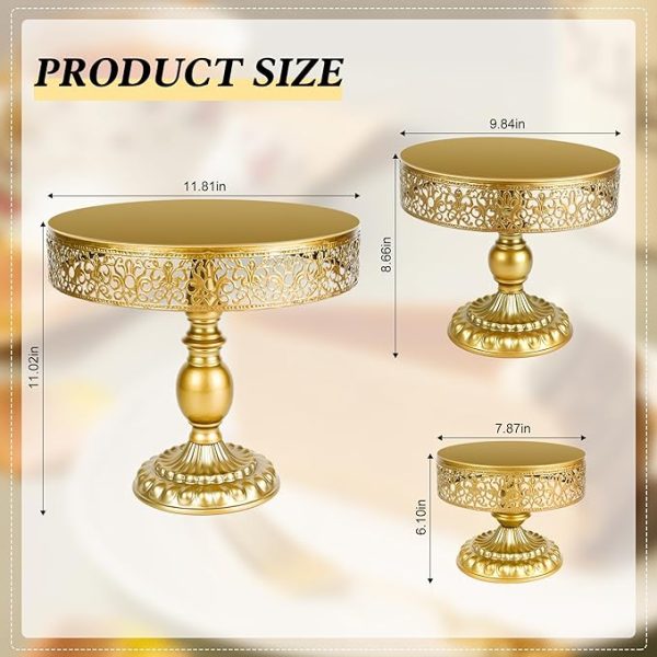- ??SUITABLE SIZE?? – About 10 inch diameter (25 cm), 6.5 inches tall (16 cm). Ideal for cakes less than 10 inches in diameter. Fashionable European-style cutout design with a retro gold look that never fades or rusts, perfect for displaying or serving your cupcakes, macarons, candy, cookies, fruit or any other delicious treats.
