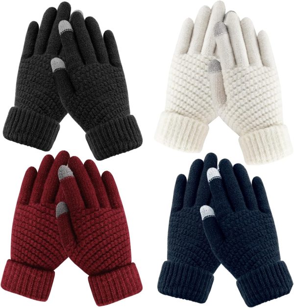 12 Pairs Touchscreen Gloves Stretch Knitted Texting Gloves Warm Windproof Solid Color Mittens For Men and Women