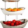3 Tier Ceramic Fruit Basket for Kitchen Counter with Metal Stand, Fruit Bowls with Rack, Porcelain Bowls for Fruit Vegetable Bread Candy Snack Nuts Dessert Cake Tray (Gold Triple Layer)