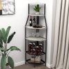 - ??Space Saving Freestanding Corner Wine Rack??-67.5″x14.96″x14.96″.It occupies little space,fits well in corner.Total 5 tier shelves provide enough space to storage wine buckets, drinks, trays, dishes, condiments, and other kitchen supplies.This wine bar rack with grid shelf to hold 12 wine bottles, stores each bottle horizontally to keep wine fresh longer until you??re ready to drink.The glass holder can hang up to 4-6 glasses.