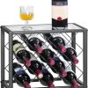 - ??Sturdy, Durable Wine Storage??The free-standing wine rack table is crafted from metal legs so you don??t worry about placing too much wine to cause it to tilt or fall, the footpad’s design ensures stability and will not scratch the floor. The cabinet top can hold more than 55 lbs, and each shelf can hold bottles up to 110 lbs.