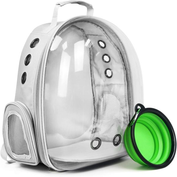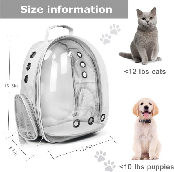 - BREATHABLE SPACE CAPSULE CAT BUBBLE BACKPACK. Extra 9 vent holes around this carrier backpack and two side windows to perform great air circulation inside. Expanded back panel to be a giant tent bed for your furry friends to enjoy outdoor time with nature and sunshine well without feeling stuffiness in the backpack, the best ventilation ever.