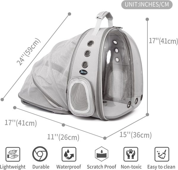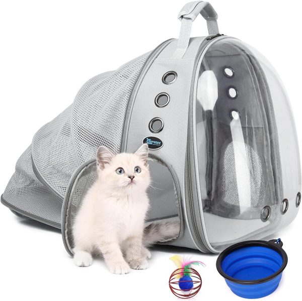 - TRANSPARENT CLEAR BUBBLE FRONT + EXPANDABLE BACK. This cat backpack carrier increase your pet’s visual space via front transparent hard shell, gives more room and play time inside by expandable back panel. The real ever bigger expandable cat backpacks