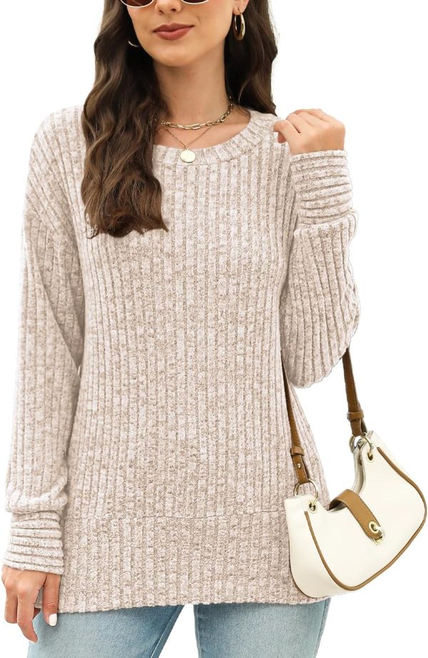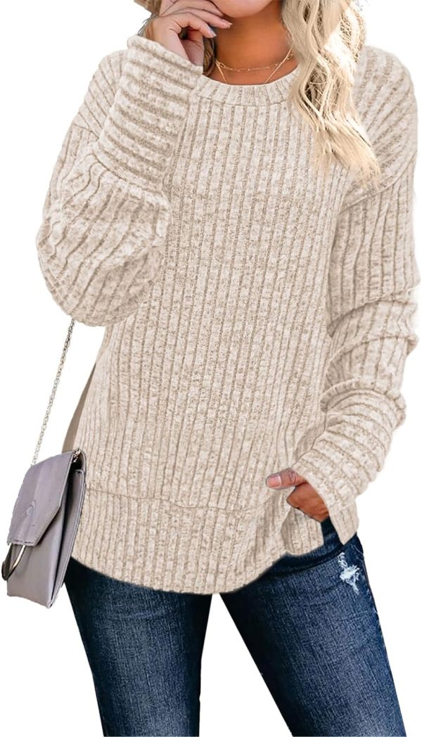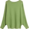 - Boat neckline, bat dolman sves, solid color, ribbed knitted, loose pullover sweater design.