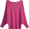 - Boat neckline, bat dolman s,belted wais, solid color, ribbed knitted, loose pullover sweater design.
