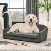 Calming Dog Bed, Orthopedic Cotton Foam Dog Sofa Bed, Comfortable Plush Dog House Cat Mat Pet Bed, Gray