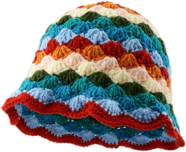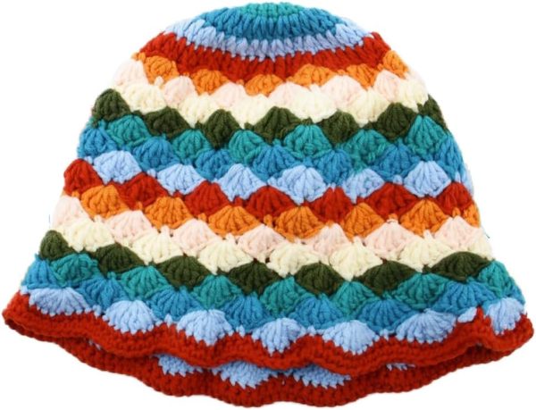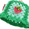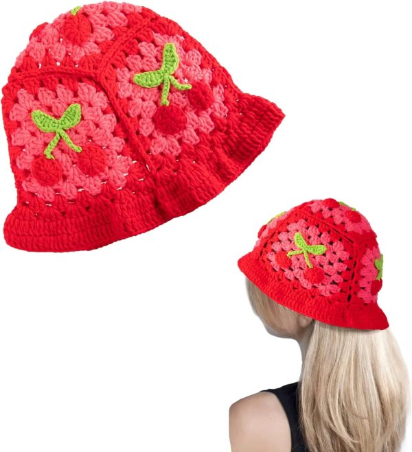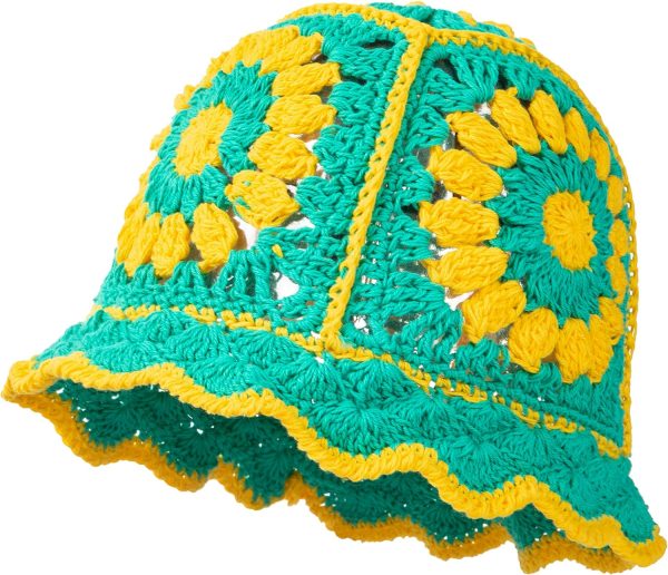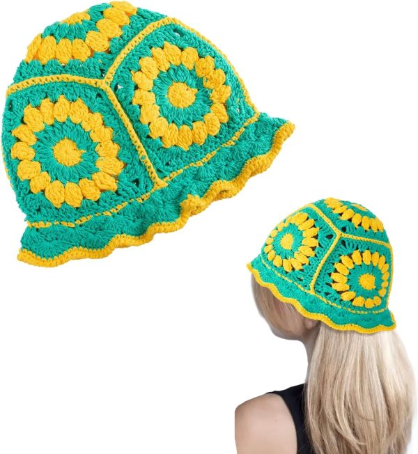 Crochet Bucket Hat for Women Handmade Floral Hat Portable Knitted Elastic Cute Beach Hat for Vacation Traveling