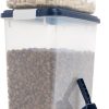 - Easy To Move: The bottom of the storage box is designed with an independent roller, you only need to push to move easily. With the hidden handle, it is convenient for you to move the grain storage barrel.Storage weight depends on the size and density of food.