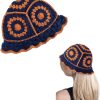 Knitted Bucket Hat for Women Handmand Floral Crochet Cap Summer Outdoor for Girls