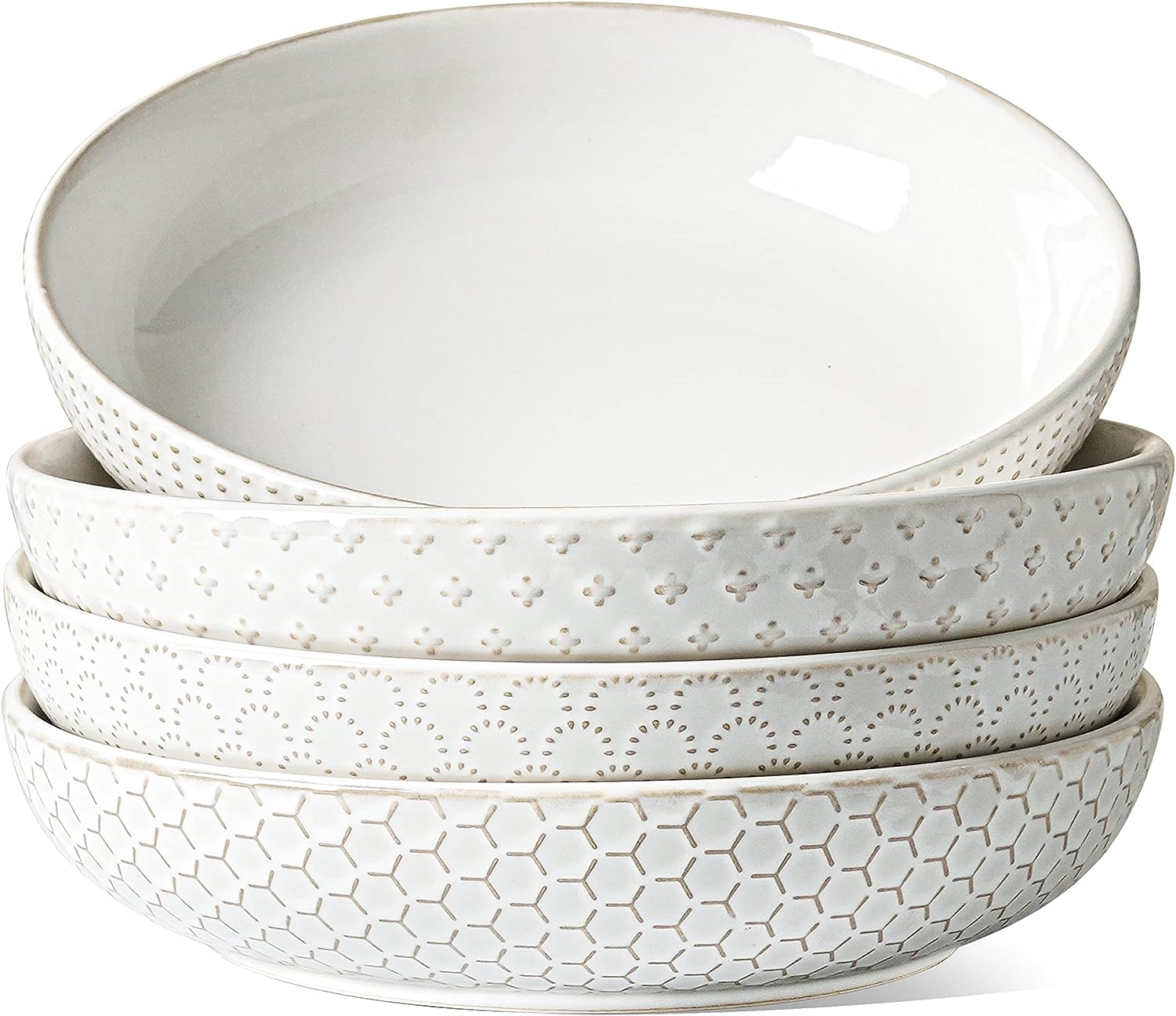 - House Warming Gift Idea – Each pasta bowl has a different pattern embossment. The outside of the bowl is embossment. The inner glaze is a smooth ceramic surface. New homeowners will like the timeless farmhouse look of these pasta bowls.
