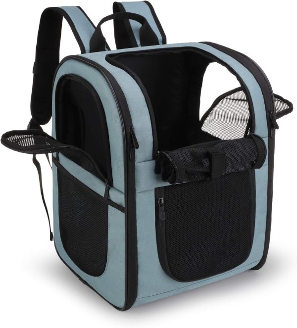 Pet Carrier Backpack for Small Cats and Dogs, Puppies, Two-Sided Entry, Safety Features and Cushion Back Support for Travel, Hiking, Outdoor Use (Blue)