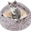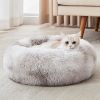 Plush Calming Dog Bed & Covered Cat Bed Cave – Soft Warm Cozy and Fluffy Round Donut Pet Bed for Puppies and Kittens up to 15 lbs(16″,Tie-Dye Gray)