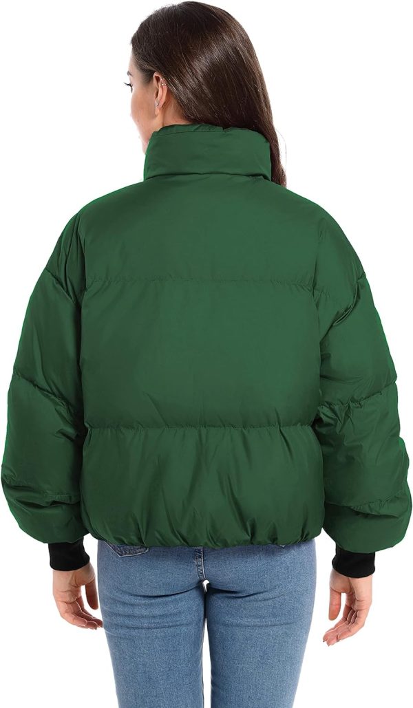 Puffer Jackets for Women Baggy Warm Stand Collar Long Sleeve Full Zip Short Puffy Down Jacket Coat