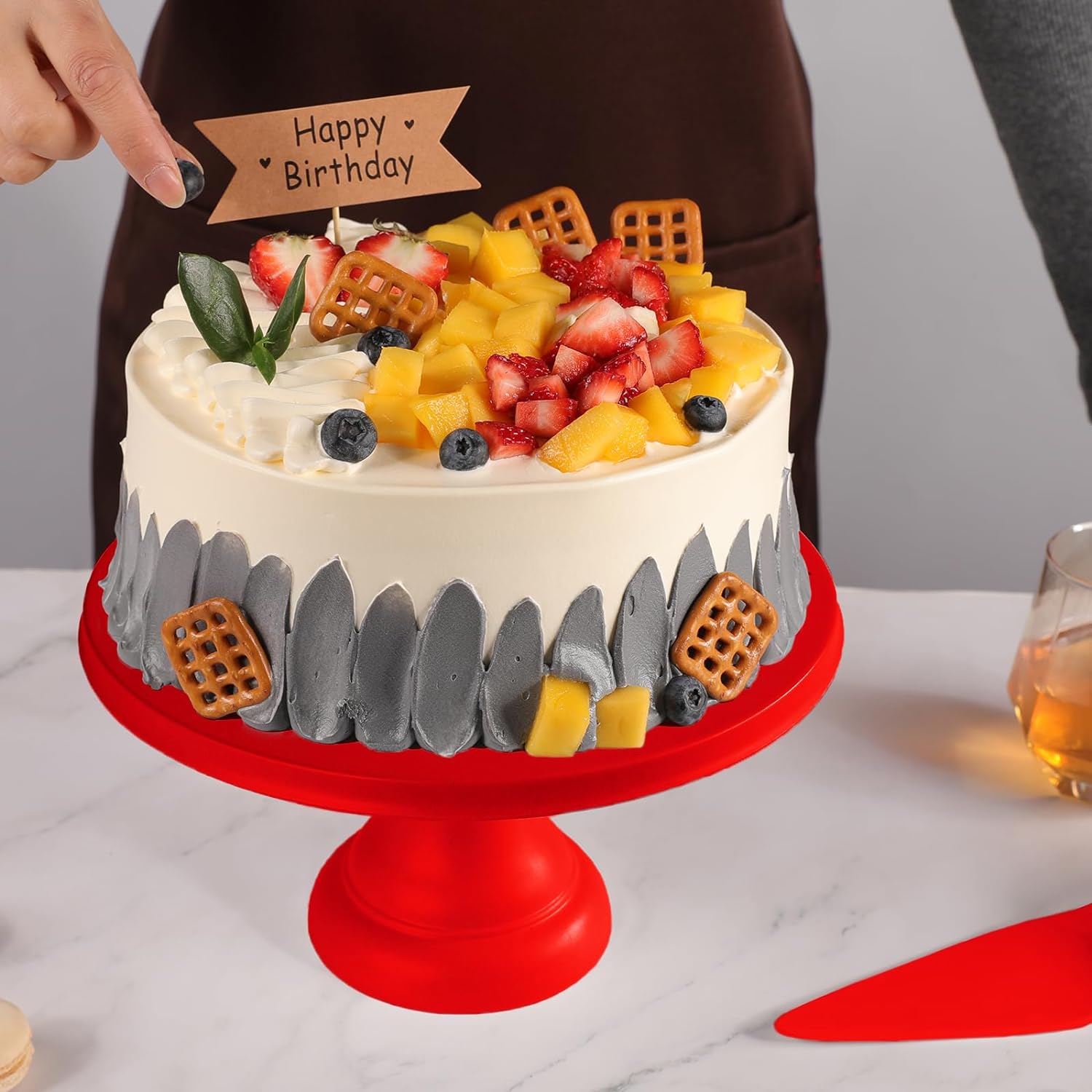 - ???Color??The cake stand and cake spatula are same color classic red and same materials, they are modern and chic enough to be your first choice for cakes. The cake stand top tray can be use as a bbq plate and the stand leg also can use as a simply cup in outside