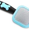 - Easy to use and clean: this cat grooming brush with ergonomic and durable non-slip rubber handle provides comfort and ease. Simply pushes on the one-click buttom, the shutter will pop up and seperating the hair from the brush.