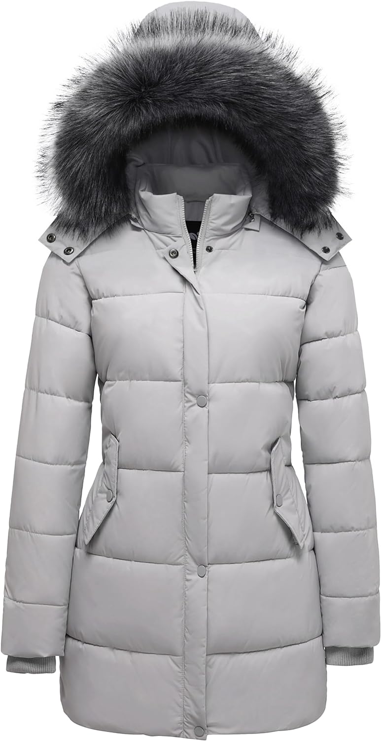 Women’s Winter Thicken Puffer Coat Warm Snow Jacket with Fur Removable Hood